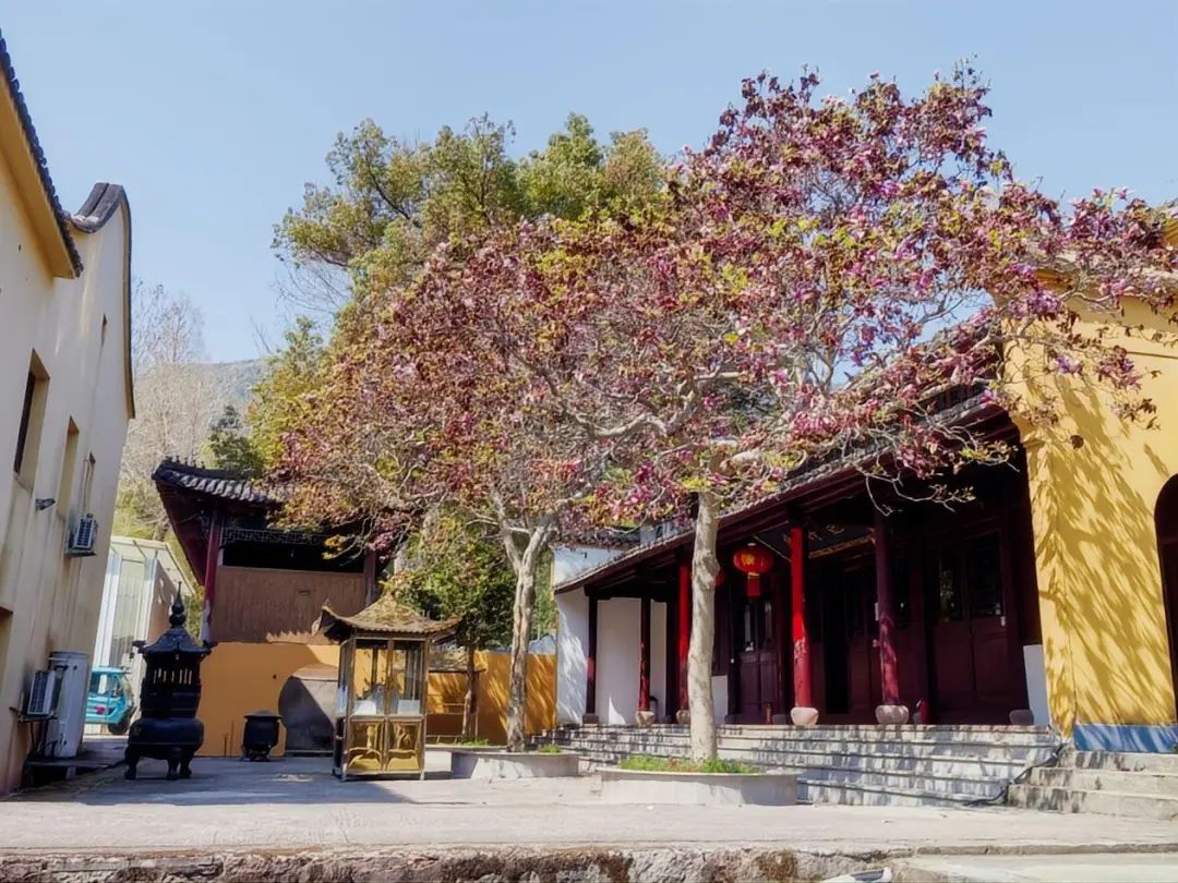 早上8:45,大巴準(zhǔn)時從園區(qū)啟程,在陽光明媚中駛向?qū)幉ㄏ笊綁︻^鎮(zhèn)舫前村。抵達智門禪寺時,茶園環(huán)繞,竹海綿延,百年紫玉蘭正值花期。大家或駐足欣賞古剎花影,或在禪寺咖啡館品鑒特色飲品,于傳統(tǒng)與現(xiàn)代交融中開啟這一天的芳菲之旅。