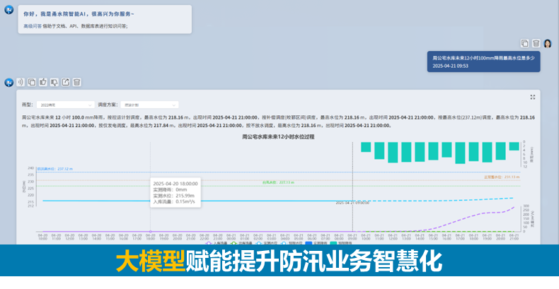• 智:空天地監(jiān)測網(wǎng)絡(luò)+數(shù)字孿生技術(shù)+大模型(基于DeepSeek、Qwen)賦能,構(gòu)建智慧防汛體