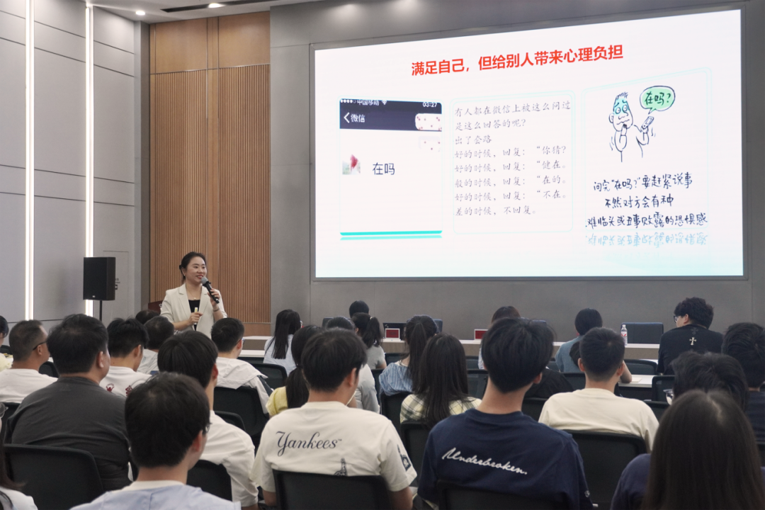 陳瑛老師的講座圍繞自我激勵、協(xié)同溝通、對外溝通、對上溝通四大維度展開。首先,陳瑛老師分別以工作場景和生活場景中的溝通對話與大家進(jìn)行互動,帶領(lǐng)大家對“高情商”進(jìn)行思考與剖析,由此展開當(dāng)天的主題。隨后,結(jié)合豐富的實戰(zhàn)案例與互動環(huán)節(jié),陳瑛老師層層遞進(jìn),深入淺出地講解了如何在日常工作中實現(xiàn)高效溝通,激發(fā)自我驅(qū)動力,提升團隊協(xié)同效能。在長達(dá)2.5小時的課程中,陳瑛老師還結(jié)合商務(wù)禮儀的要點,根據(jù)不同場景對溝通實操進(jìn)行了解析。并強調(diào),良好的溝通不僅是技巧,更是一種心態(tài)與習(xí)慣的培養(yǎng),也是實現(xiàn)個人與團隊實現(xiàn)共同成長的重要途徑。