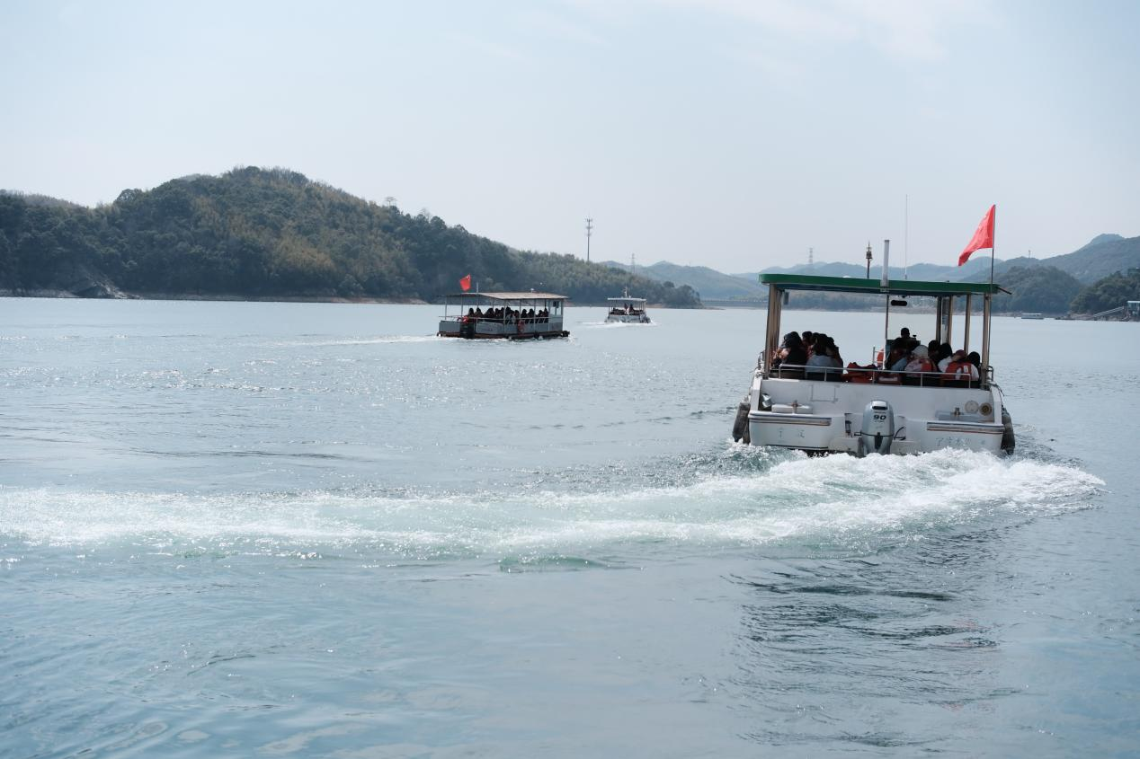 第一站,隊(duì)伍分批乘船登上湖心島——猴島,近距離觀賞野生獼猴群的靈動可愛。島上不僅有“龍女獻(xiàn)珠”“九龍神龜”等人文景觀,更有獼猴嬉戲,引得大家紛紛拿出手機(jī)拍照留念。漫步環(huán)島小道,湖光山色盡收眼底,微風(fēng)拂面,令人心曠神怡。