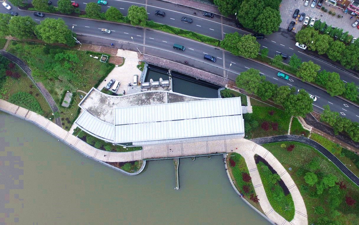 保豐碶閘站位于現(xiàn)有濱江公園范圍內(nèi),通過合理的建筑布置與現(xiàn)代的建筑設(shè)計(jì),將水利廠房與周邊的景觀進(jìn)行了有機(jī)結(jié)合,同時(shí)考慮到本工程的悠久文化底蘊(yùn),于泵站內(nèi)設(shè)置了文化長廊,建成以后成為了寧波水利的一個(gè)重要對(duì)外窗口。