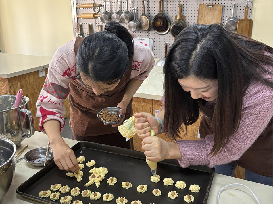 活動當天,女職工們按時到達活動教室,發(fā)揮巧思,施展妙手,或是“掐絲、剪絲、上砂、上膠”,或是“測量、造型、印刻、拋光”,或是“和面、打發(fā)、烘烤、裝點”,解鎖了一系列全新的體驗,收獲了節(jié)日的快樂和美好。
