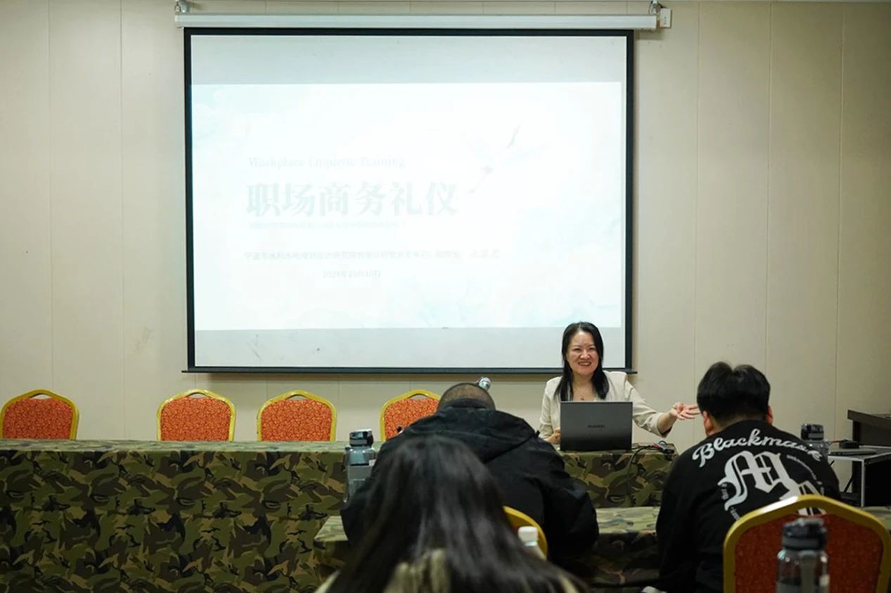 業(yè)務(wù)培訓(xùn)設(shè)有多個專題講座,分別由副院長王洪霞及各部門分院負責(zé)人主講。內(nèi)容涵蓋職場商務(wù)禮儀、行政辦公知識、規(guī)章制度宣貫、保密專題培訓(xùn)及規(guī)劃咨詢、工程設(shè)計、勘察檢測、建設(shè)管理、智慧水利等五大業(yè)務(wù)內(nèi)容。講師們聚焦重點,講解難點,分享經(jīng)驗,幫助新員工盡快完成從校園到職場的銜接,了解崗位需求、獲取職場知識、積極適應(yīng)新環(huán)境。新員工認真聽講,積極提問,收獲良多。
